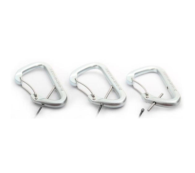 - zinc-coated steel provides longer lifetime than light alloy carabiners