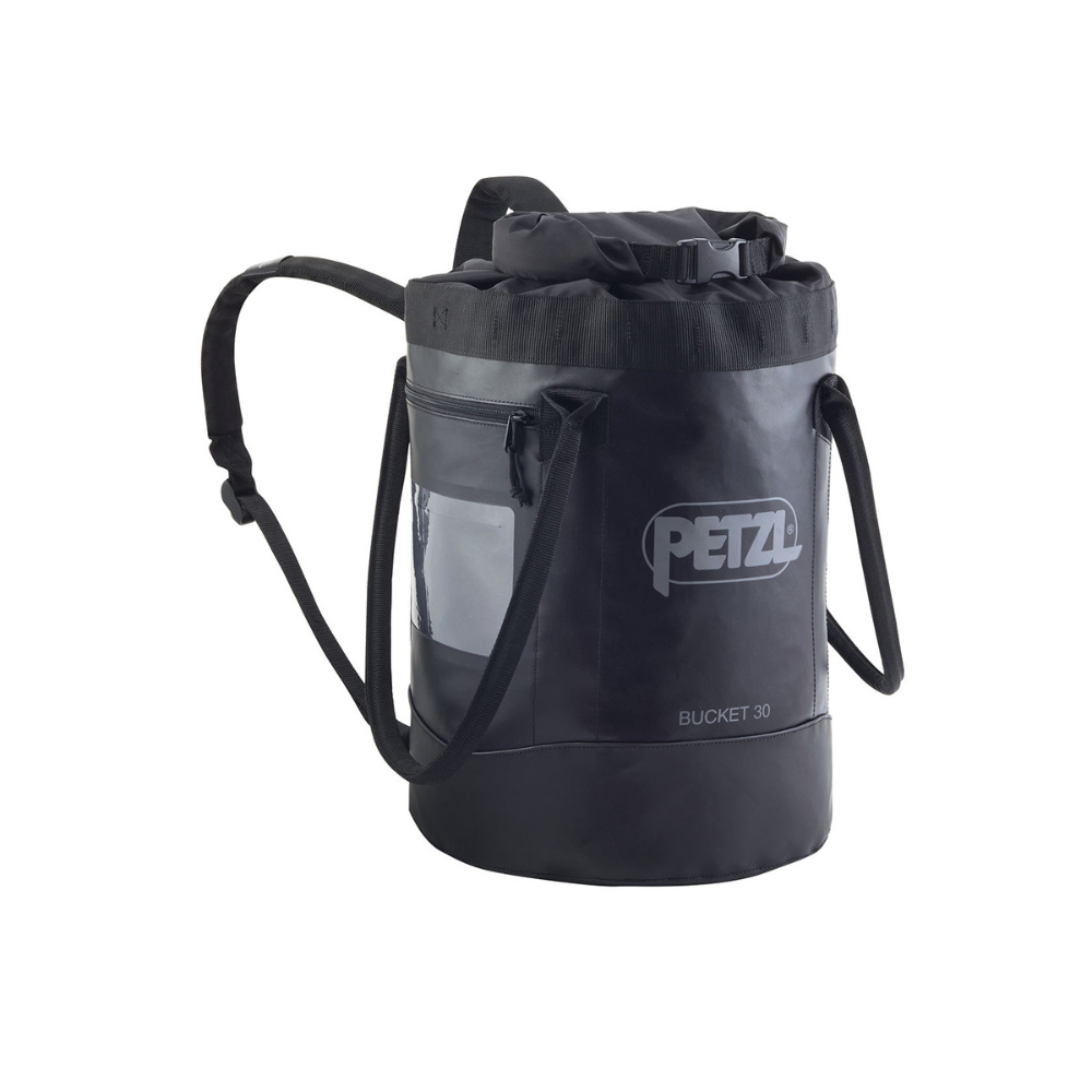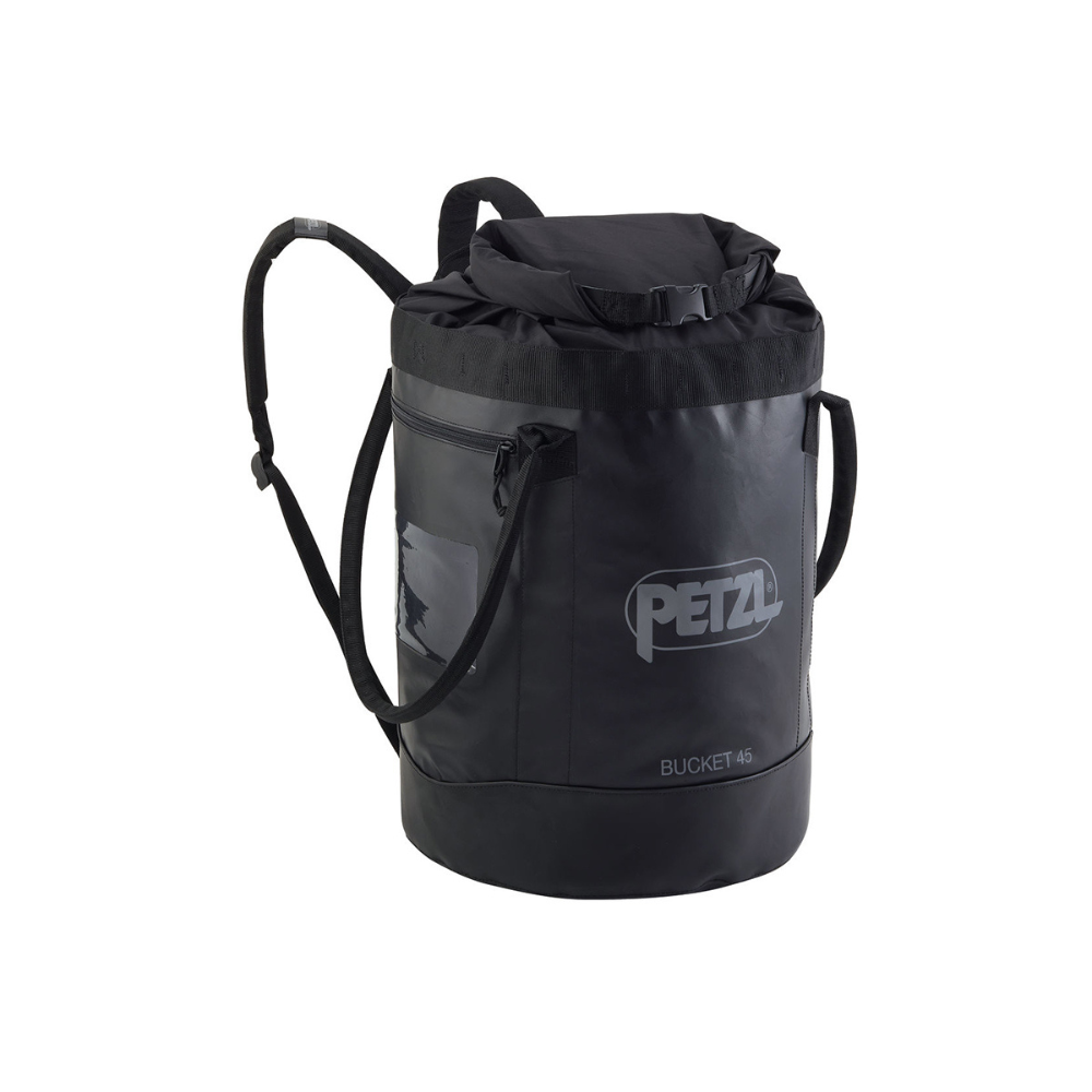 Simple and durable, BUCKET rope bags allow you to store up to 185 meters of 11 mm diameter rope. They’re freestanding and keep their shape, ven when empty, for easy access to the inside of the bag. They have an exterior pocket to store personal items and a marking area to quickly identify the contents of the bag. Made with TPU tarp material, they’re designed to withstand regular to intensive use. The BUCKET 30 and BUCKET 45 are equipped with shoulder straps so they can be carried like a backpack. They are available in three sizes: 15, 30, or 45 liters, and in three colors.