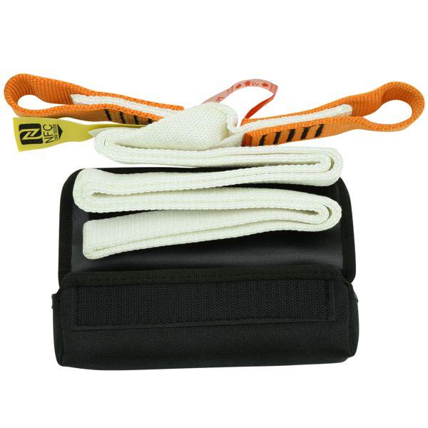 Mesh pouch with velcro protects the energy absorber from abrasion and allows regular inspection of the absorber’s condition.