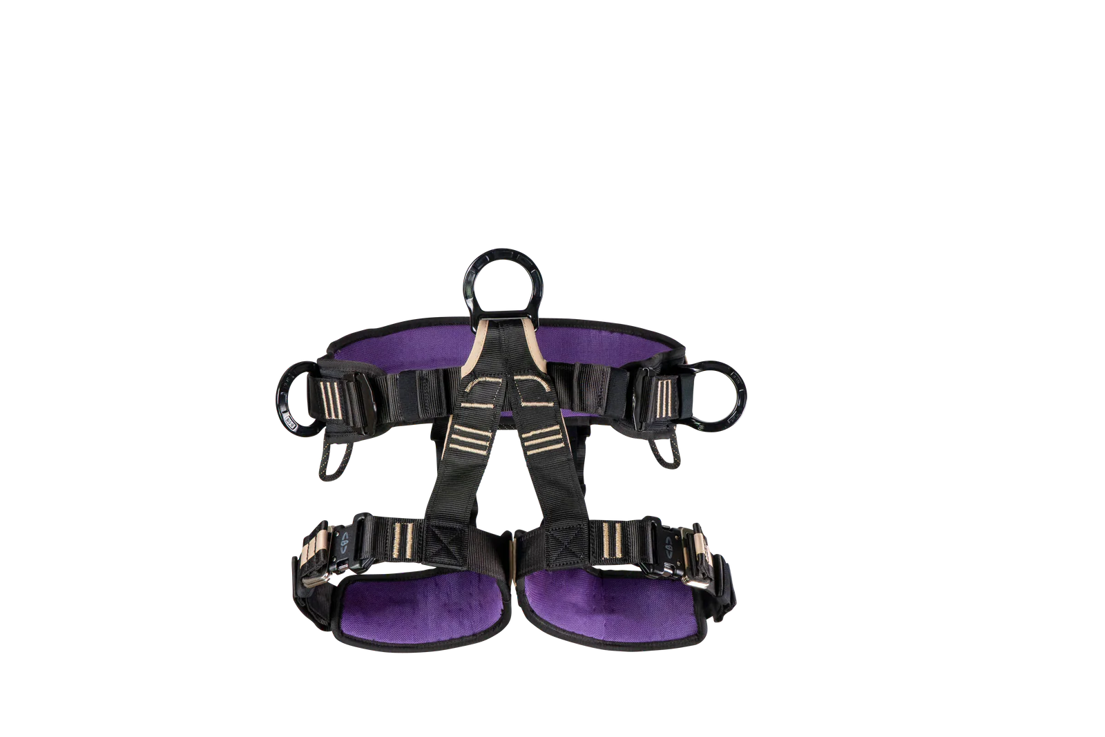 The HERO SIT is fall arrest and work positioning safety harness Its semi-rigid thigh loops and waist belt provide optimal pressure distribution where the body is in contact with the harness, without compression points.In addition, the breathable honeycomb foam lining the waistband, thigh and shoulder straps improves the overall comfort of the harness by limiting perspiration. This harness is particulrly ergonomic. The two side loops on the belt can be folded to save space. The two quick release buckles (one on each thigh) make it easy to put he harness on even when wearing bulky shoes.
