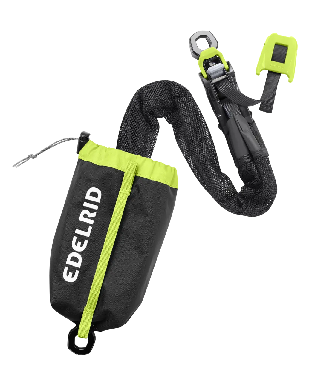 The KAA is a prefabricated haul system for tensioning systems or lifting people during rescues. In addition, as the KAA is certified to EN 354, it can be used for workplace stabilization, as a restraint system (open/closed), and for controlled lowering. Its strap-based construction makes it the most compact and lightweight system on the market. Depending on the positioning, it offers a 4:1 or 5:1 lifting ratio with an efficiency of 91 %. The KAA is packaged compactly but ready for immediate use, so that no valuable time is lost when it is required. A swivel is provided at each end to prevent the system from twisting. The hand lever on the draw cord makes it easier to pull and can also be used as a lowering lever. The KAA is available in three lengths: 0.8, 1.5 und 4 m.
