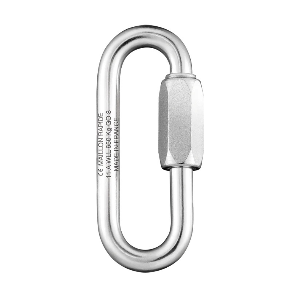The LONG OPENING QUICK LINK GALVA 7MM is a galvanized steel connector with a wide opening, ideal for connections requiring extra space (such as wide webbing). Designed for work at height and climbing when a long-lasting or permanent connection is needed.