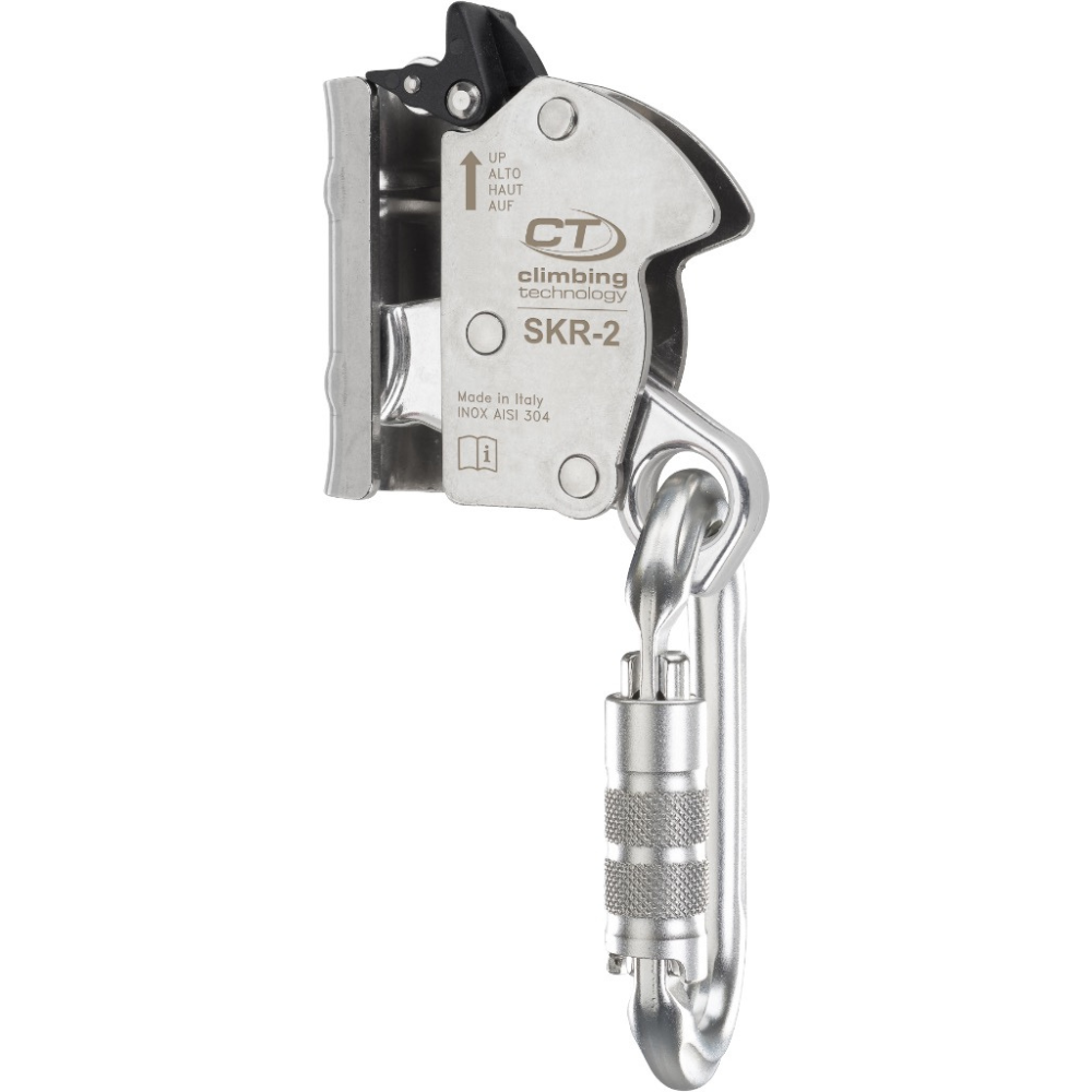 Fall arrester designed for work at height and rope access work, compliant with EN 353-2 and EN 12841-A standards.