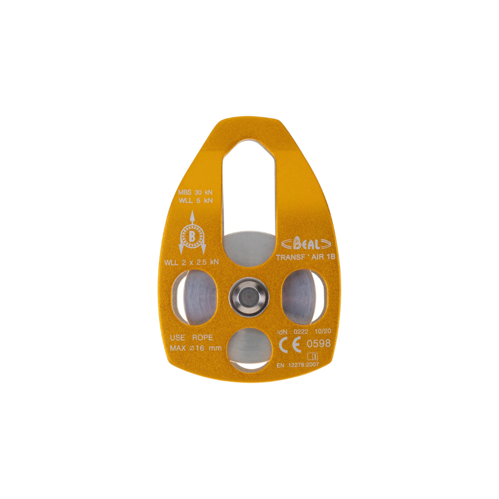 The TRANSF’AIR 1 B pulley is a pulley designed for load deflection and hauling. Single pulley with a mobile flange, it is perfectly adapted to ropes with large diameters, the mobility of the flanges facilitating the positioning of the pulley at any point on the rope.