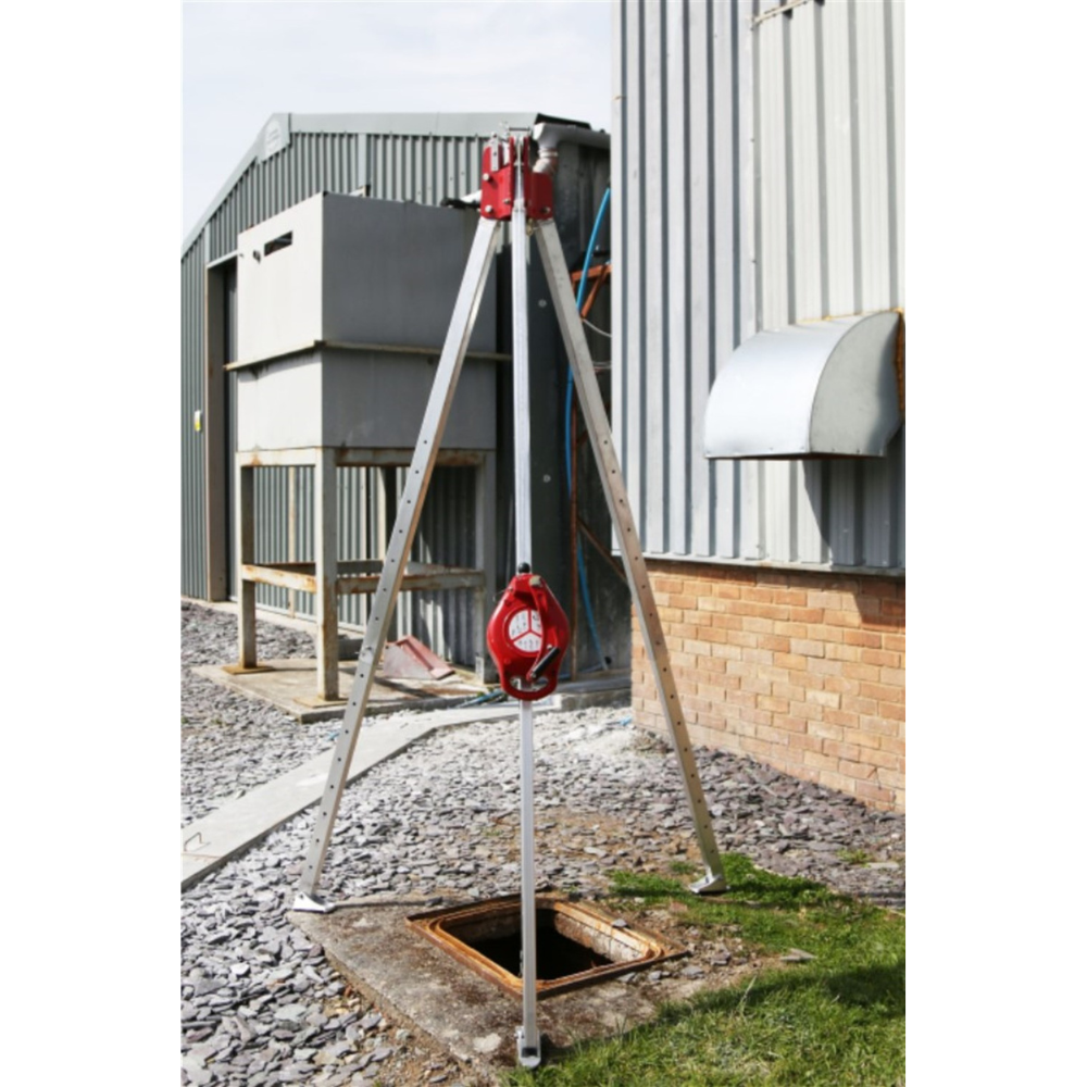 ISC Tripod Heads are manufactured from Cast Aluminium for strength and durability. The standard version (TP143) is fitted with two pulley wheels, with removable captive pins to keep the rope/wire line in place on the pulley wheel. The standard Tripod also has two swivel-eye anchor points. The Tripod legs are adjustable, up to a maximum overall height of 255cm (approximately 100”). ISC Tripods are ideal for work and rescue in confined spaces.